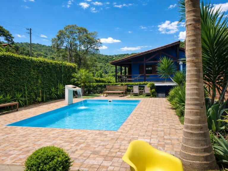 Casa de alvenaria com 2 quartos, sala, cozinha americana, banheiro e varanda. Terreno com área aproveitável de 1200m² (declive), piscina e…