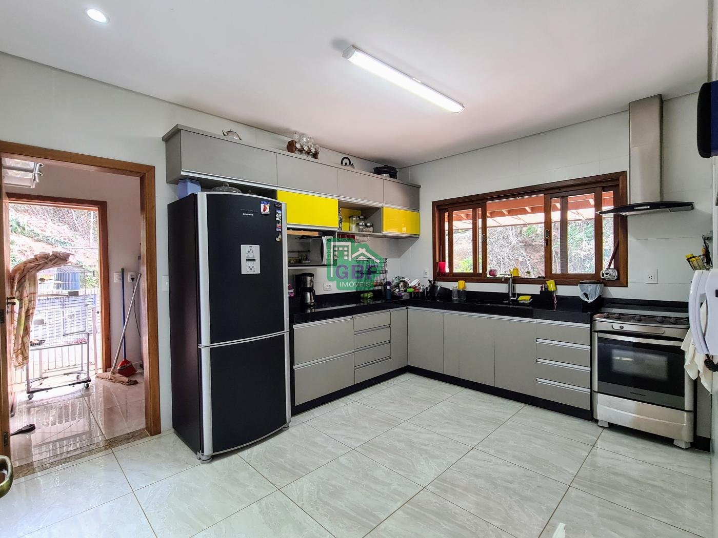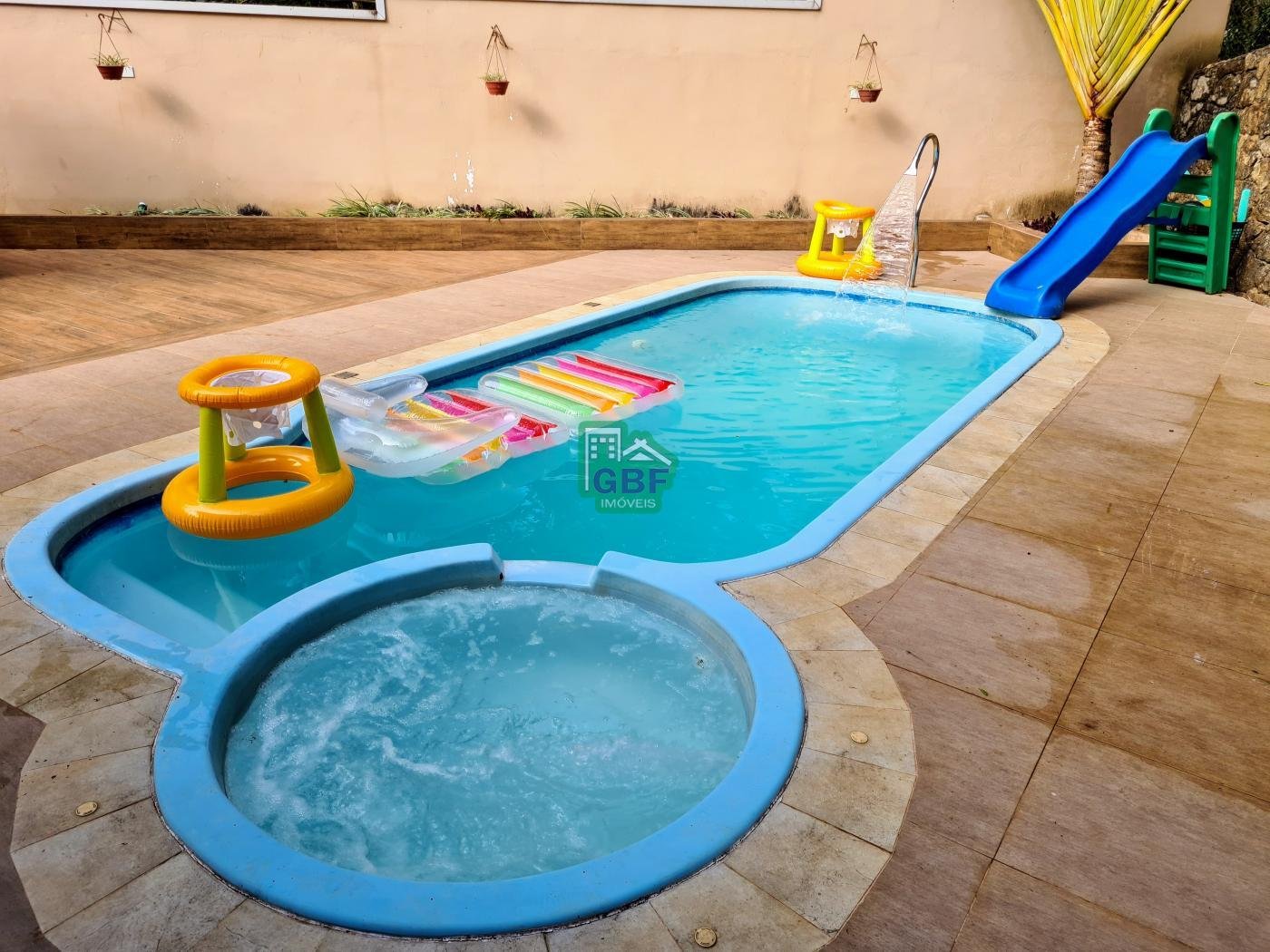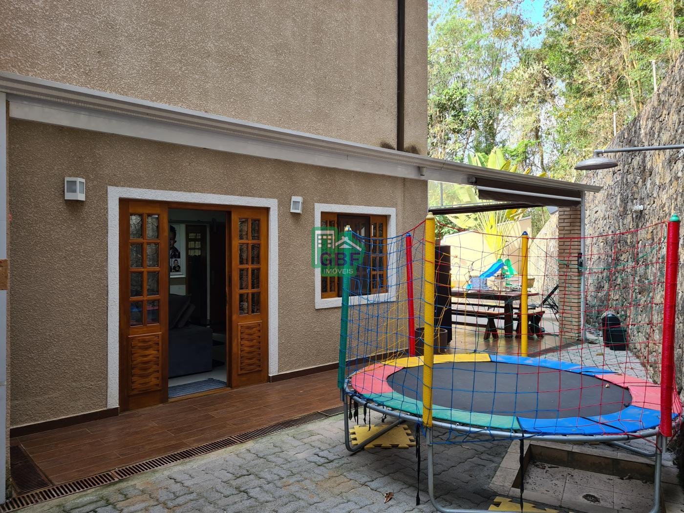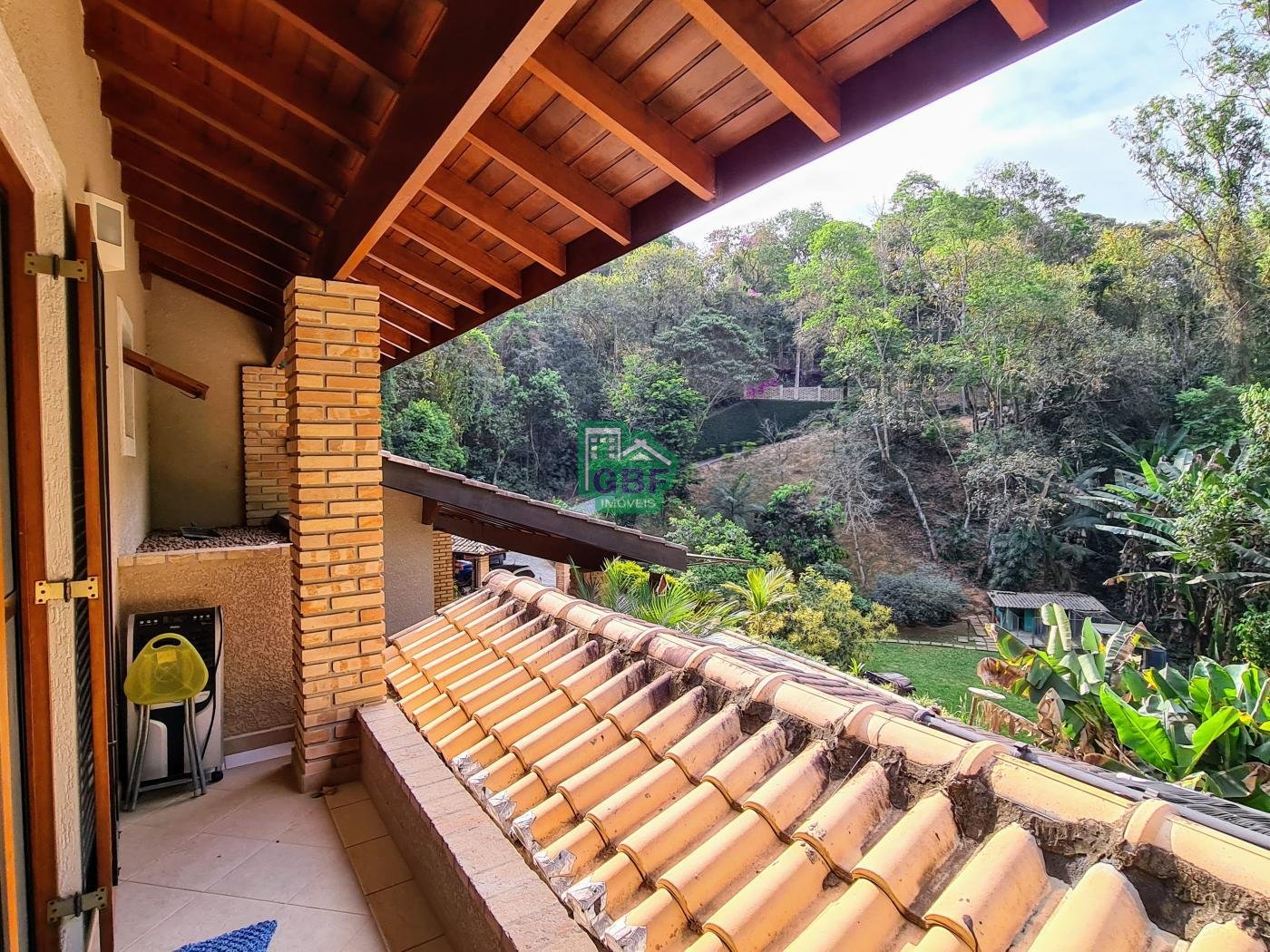 Área externa com piscina de fibra, espaço gourmet com churrasqueira, deck com vista para a mata, banheiro social, gramado, cascata, playground, galinheiro, portão automático, infraestrutura com aquecimento solar e garagem coberta com 3 vagas.
