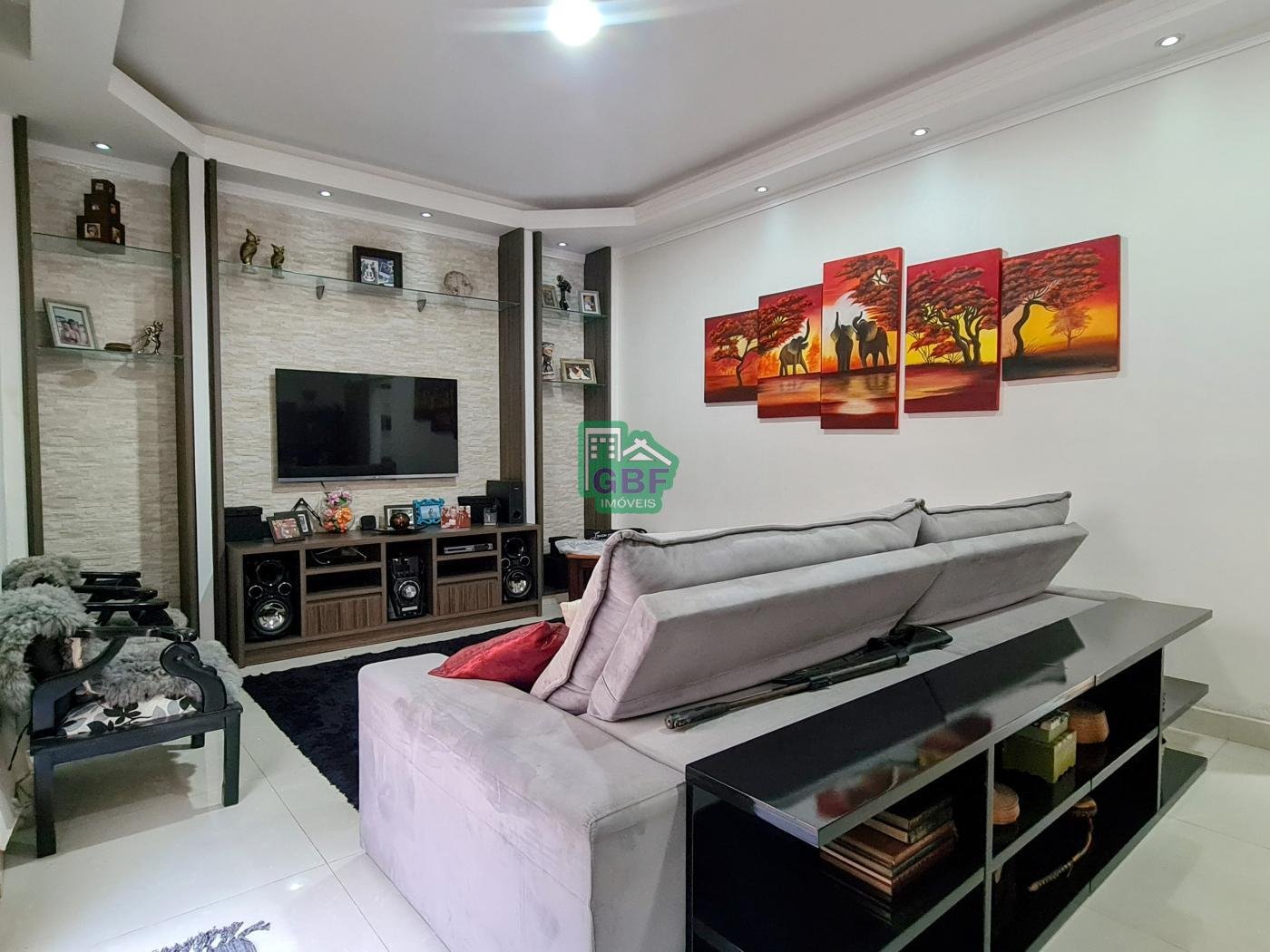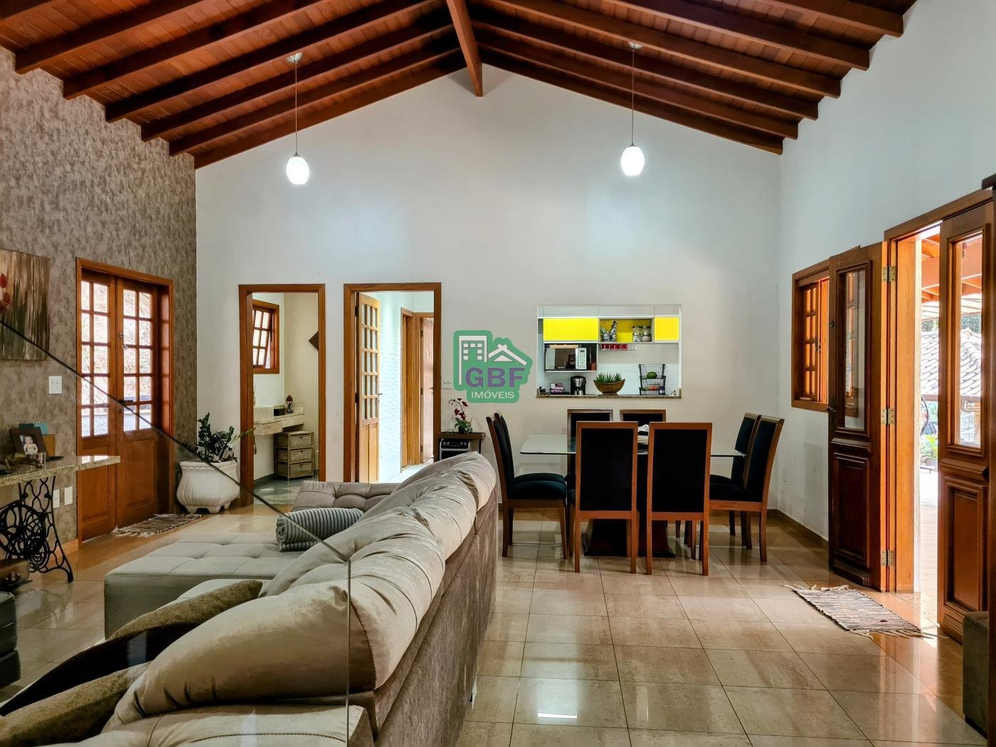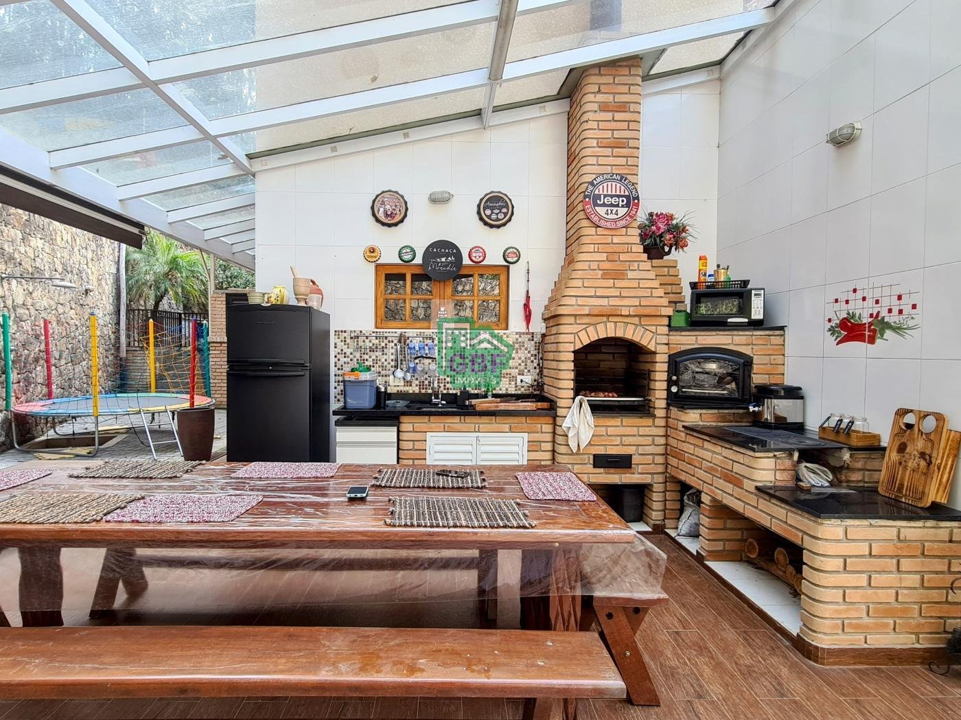 A casa é composta por 3 dormitórios sendo 1 suíte com closet e sacada, sala de 2 ambientes com lareira, sala de TV,