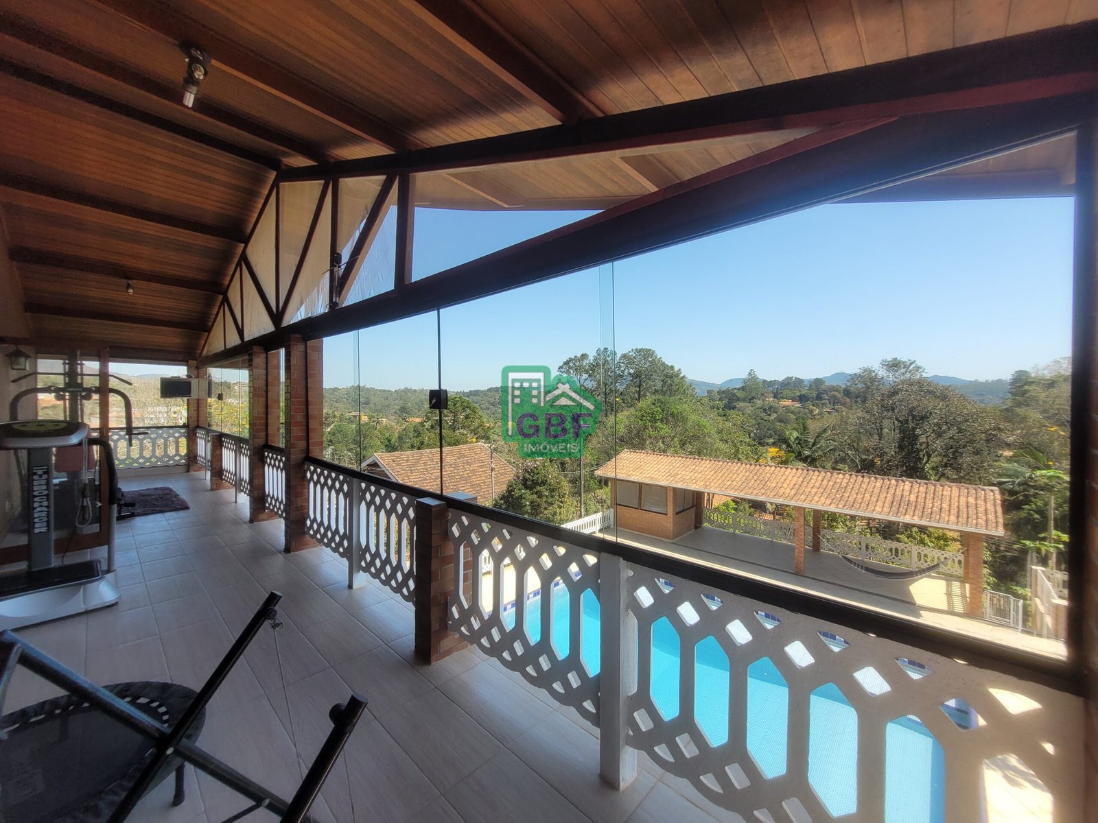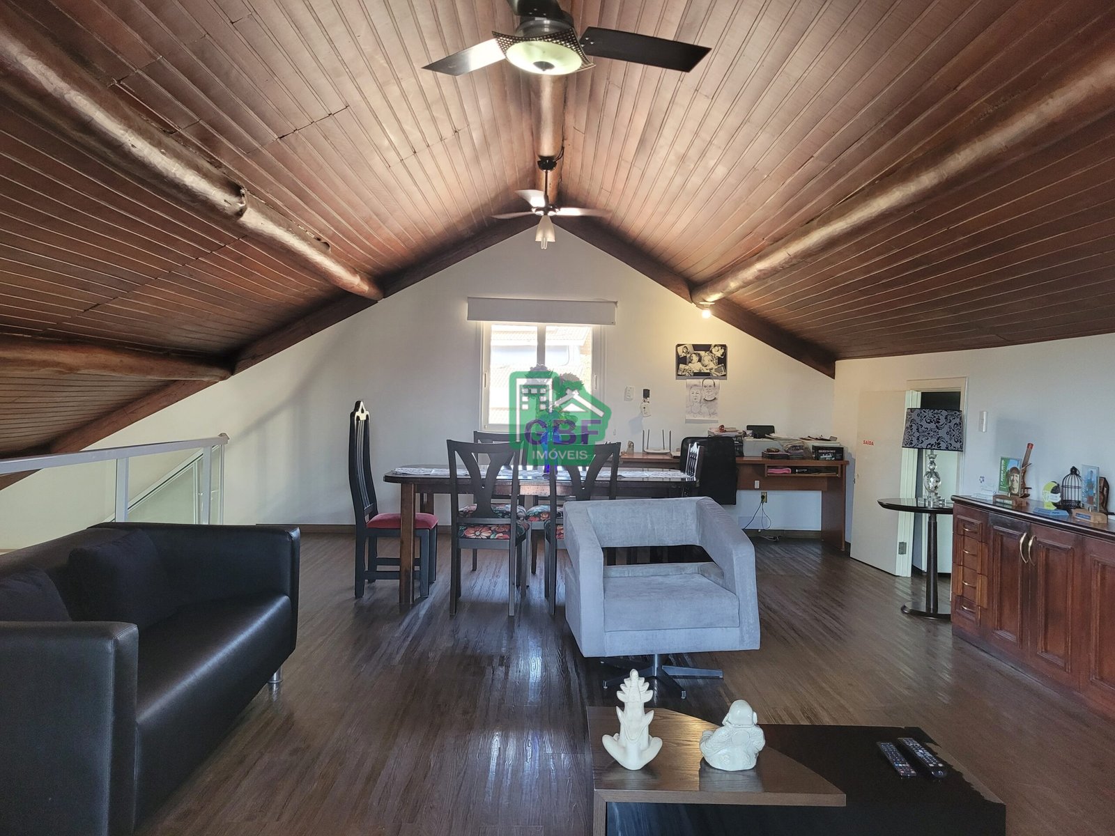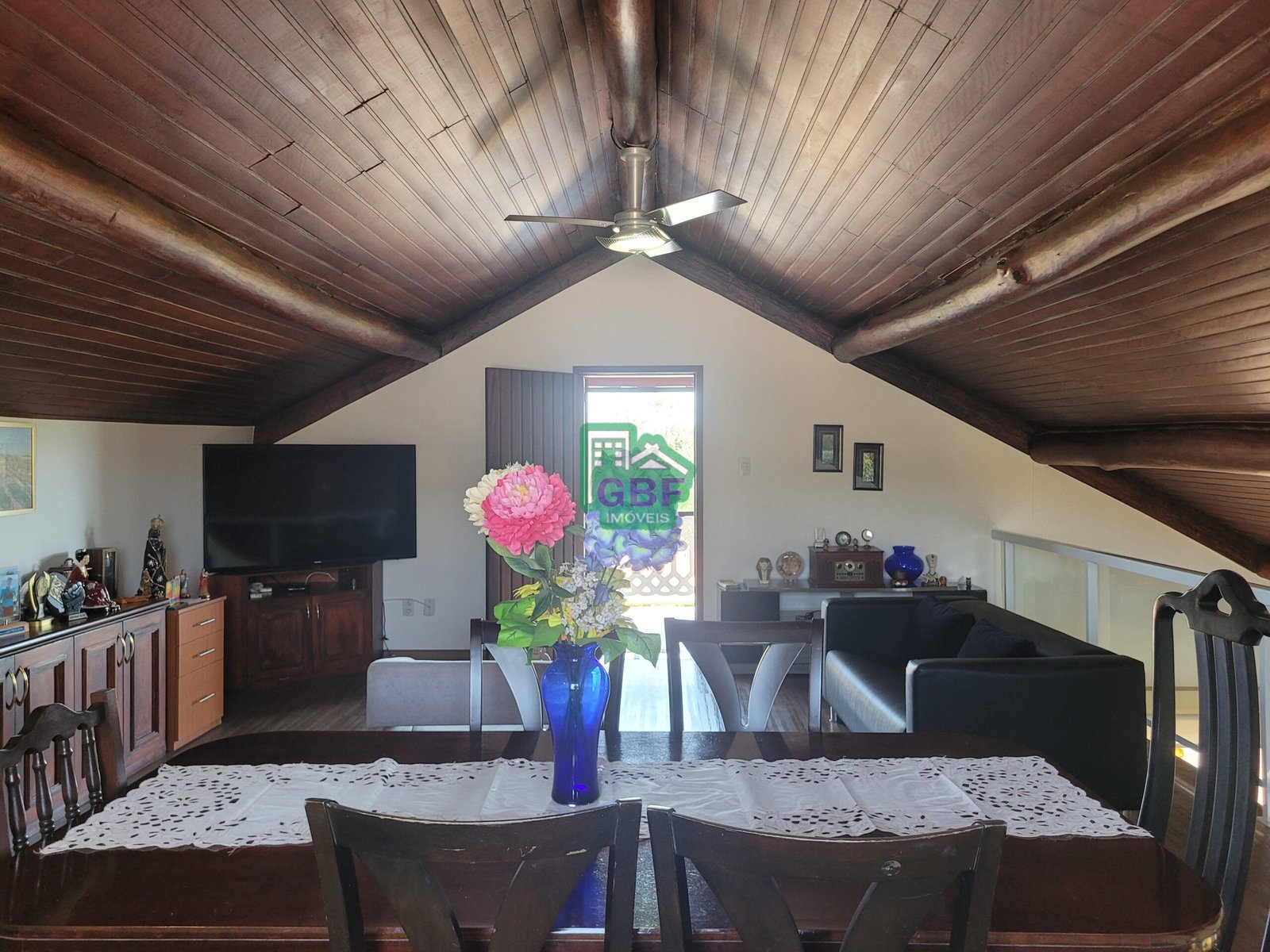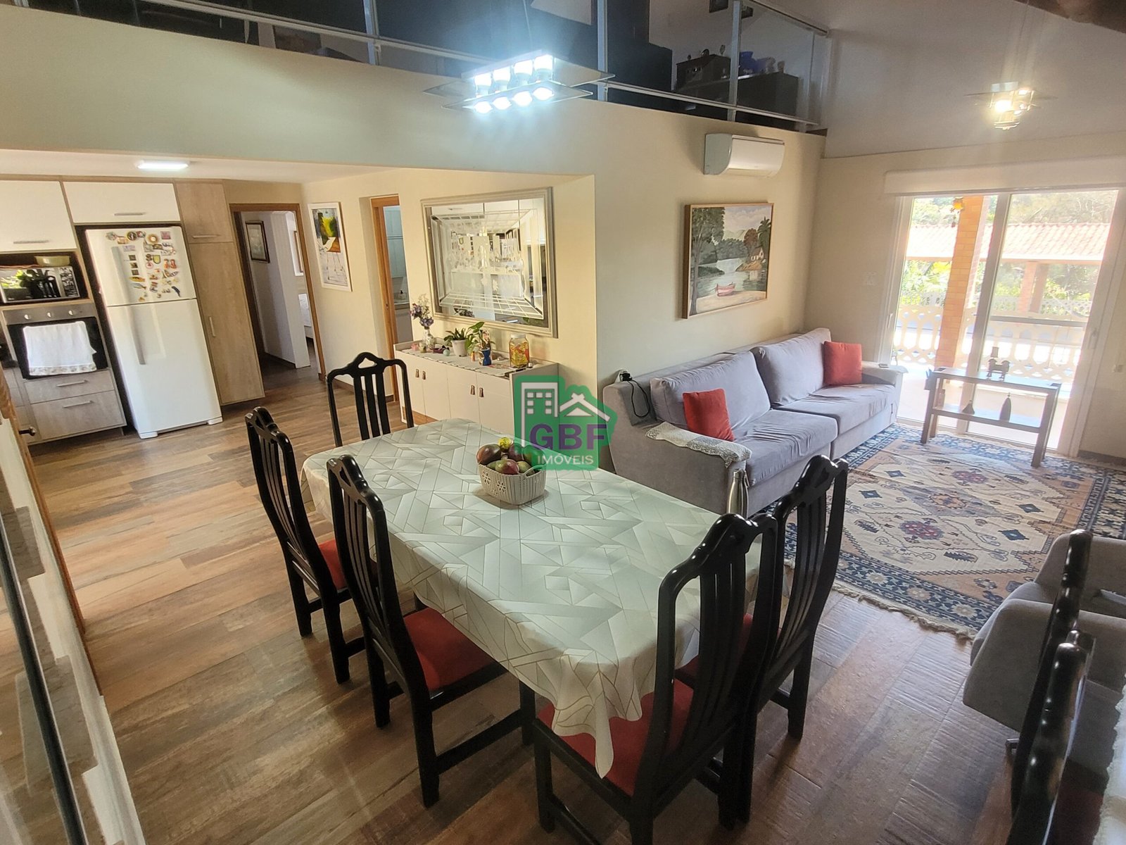 Localizada em ponto elevado do Condomínio Jardim Cinco Lagos, esta residência de estilo rústico‑moderno combina conforto, lazer e belas vistas. A construção principal é dividida em dois níveis: o pavimento social integra sala de estar, jantar e cozinha, banheiro social e varanda voltada para a piscina. Neste mesmo piso ficam dois dormitórios, sendo uma suíte com closet. No nível superior há um mezanino multifuncional com teto de madeira aparente, ideal como sala íntima ou escritório.