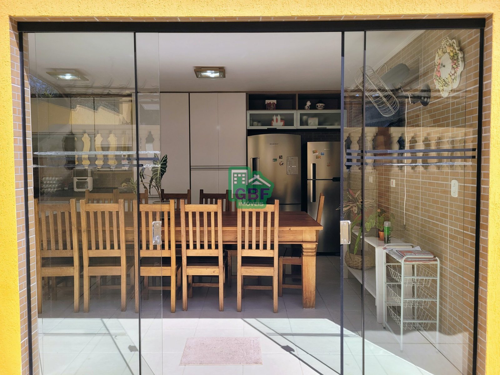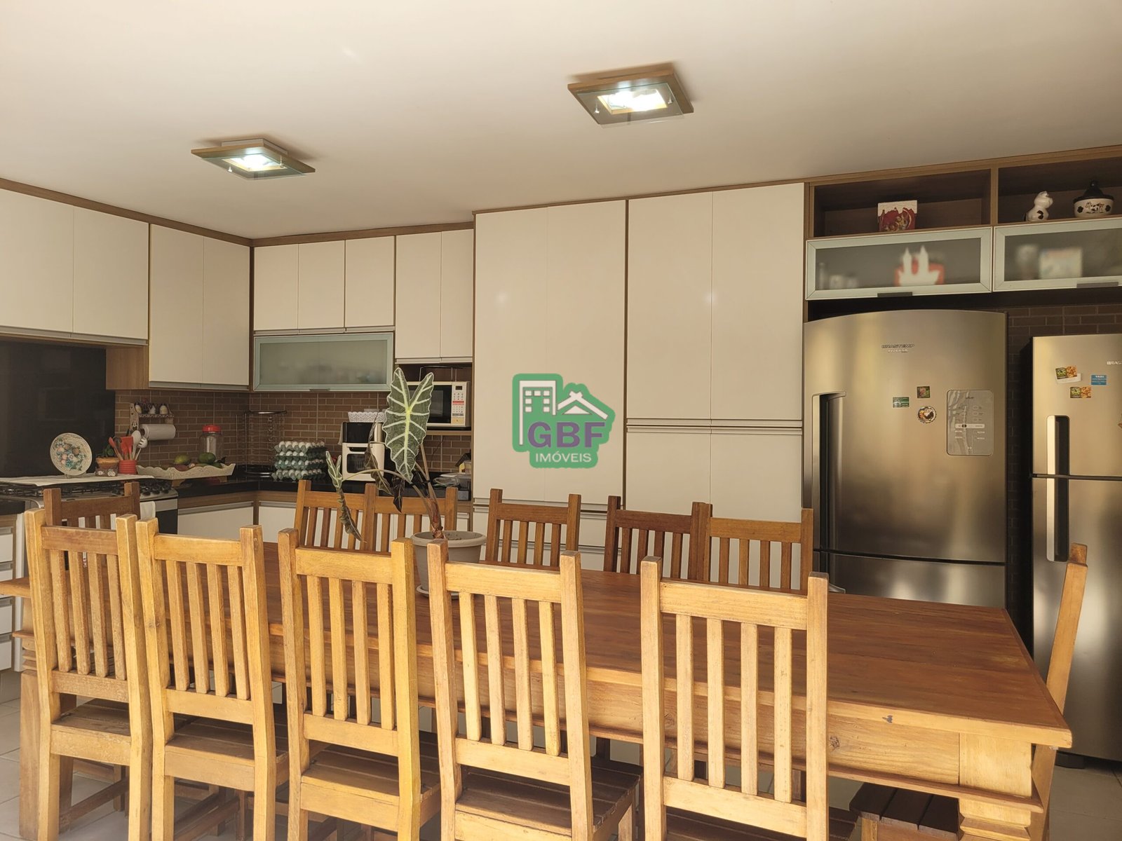 A área externa é o ponto alto: uma piscina ampla revestida em pastilhas, com solário e um quiosque coberto. O terreno, de cerca de 1.200 m², conta com jardins, balaustradas decorativas, pomar e horta. Possui uma edificação independente com espaço gourmet, lavanderia, lavabo, ateliê, banheiro social, quatro dormitórios, oferecendo privacidade para hóspedes ou uso de serviço e garagem coberta para 4 carros.