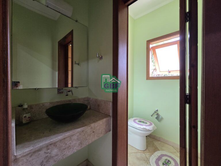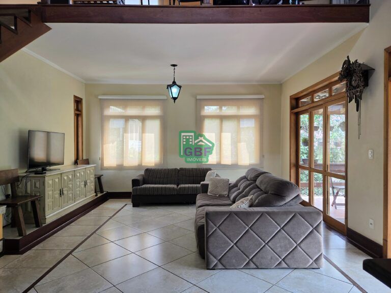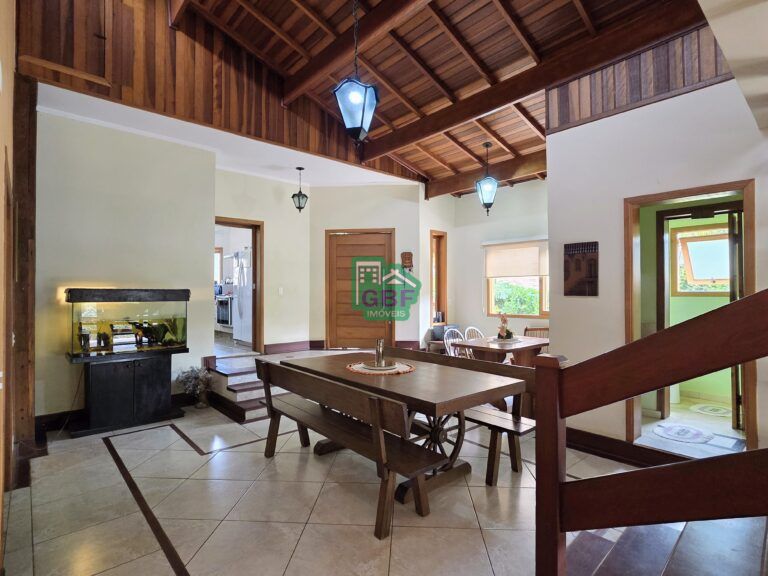 Casa localizada em uma das melhores ruas do condomínio composta por 3 dormitórios sendo todos suítes (suíte principal com closet), cozinha, sala de jantar, sala de estar com lareira, bar e varanda com vista para a mata, além de um mezanino com sacada.