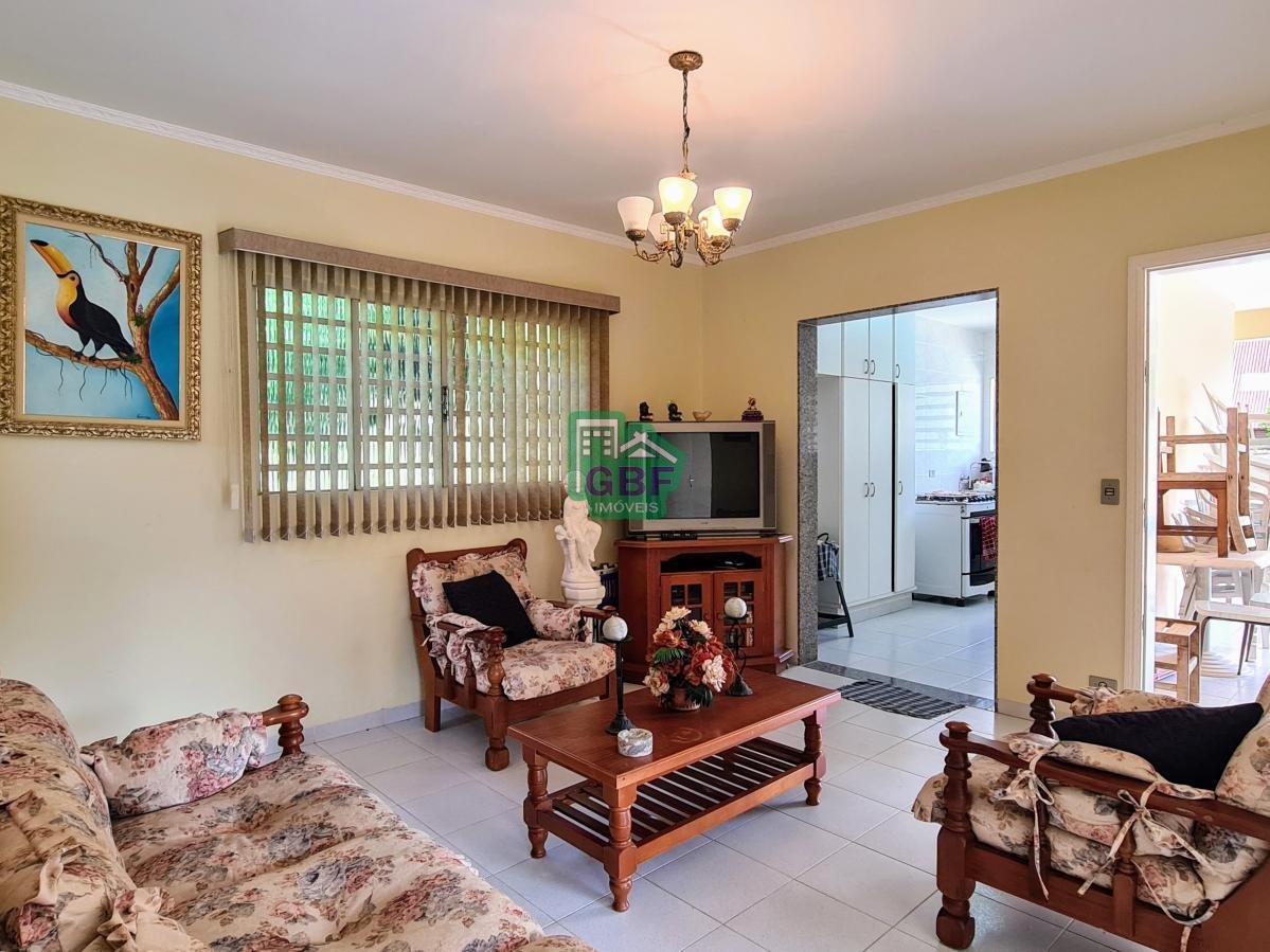 Casa 1 (chalé de madeira): quarto, sala, cozinha, banheiro e varanda.