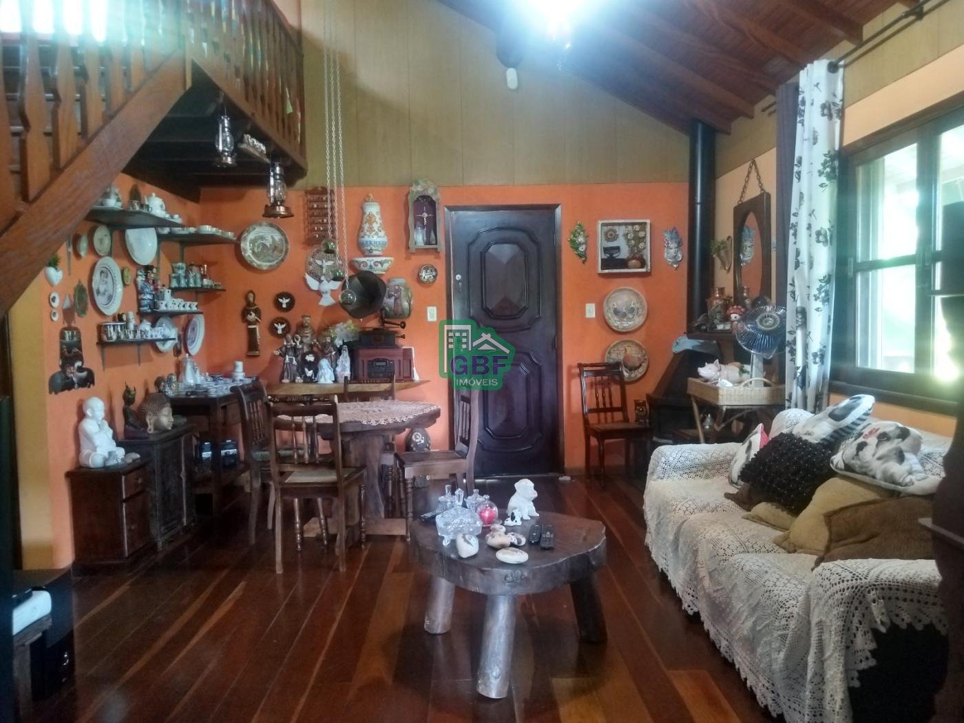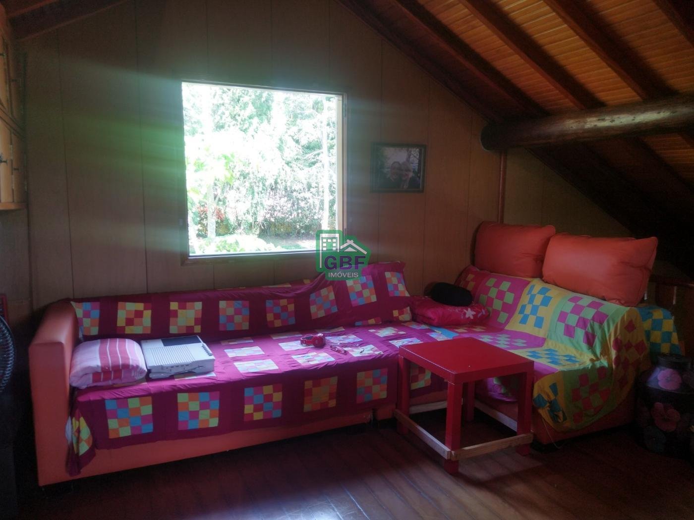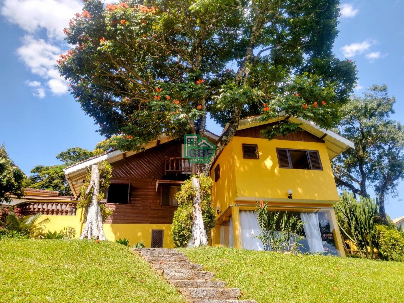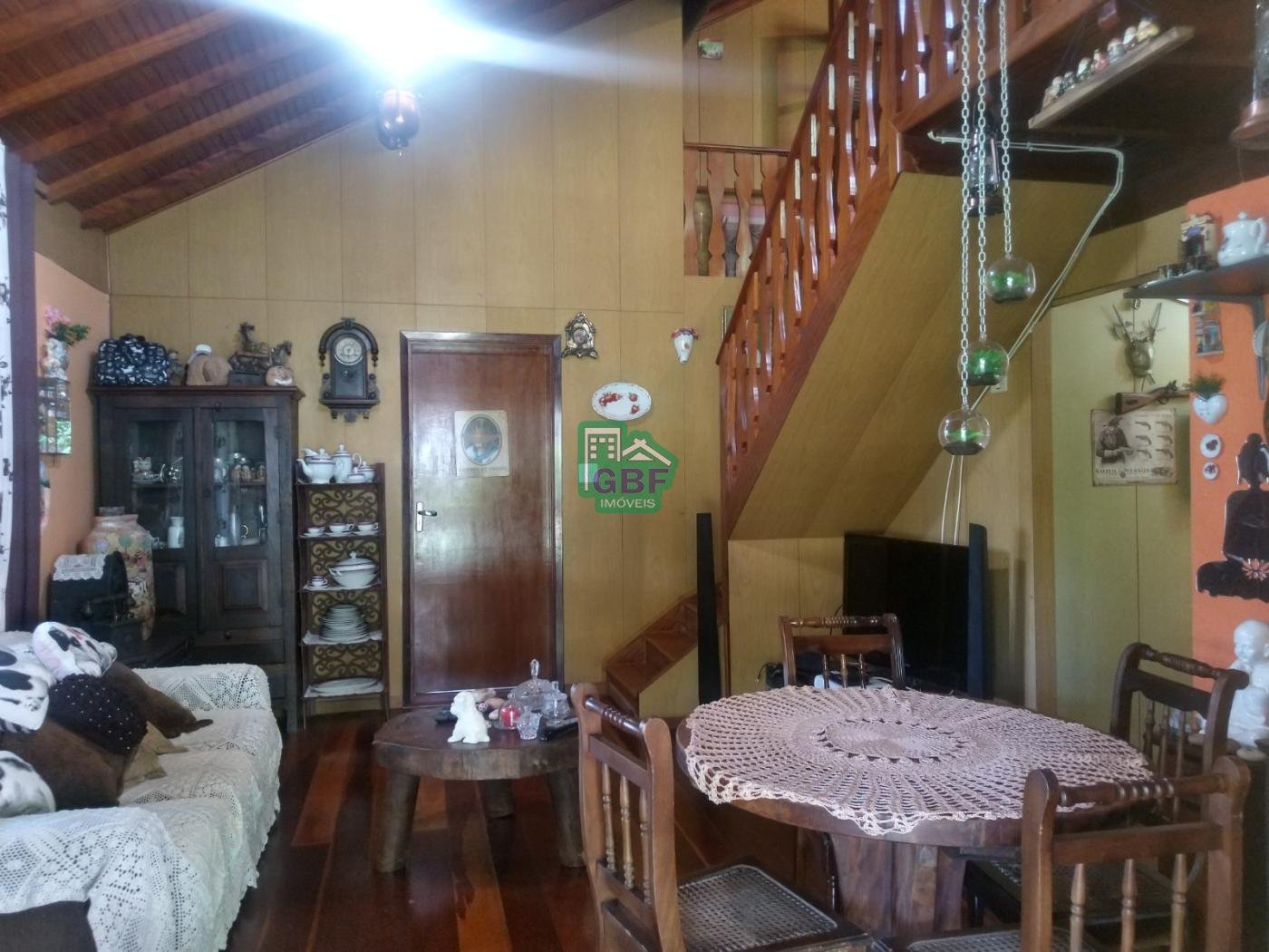 Casa mista de madeira e alvenaria com maravilhosa vista panorâmica para à serra, 3 quartos sendo 1 suíte, sala com lareira de canto e pé direito alto, mezanino com armários embutidos e sacada, banheiro, cozinha e varanda.