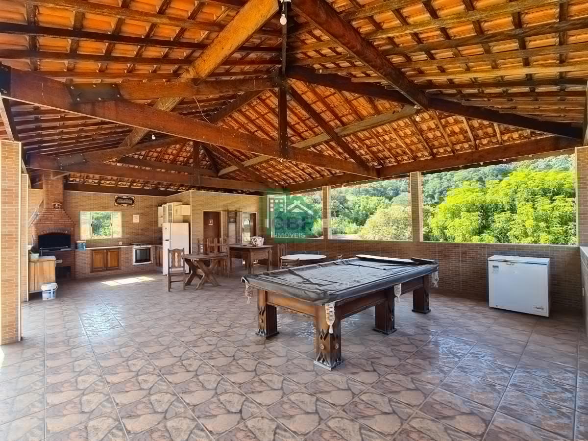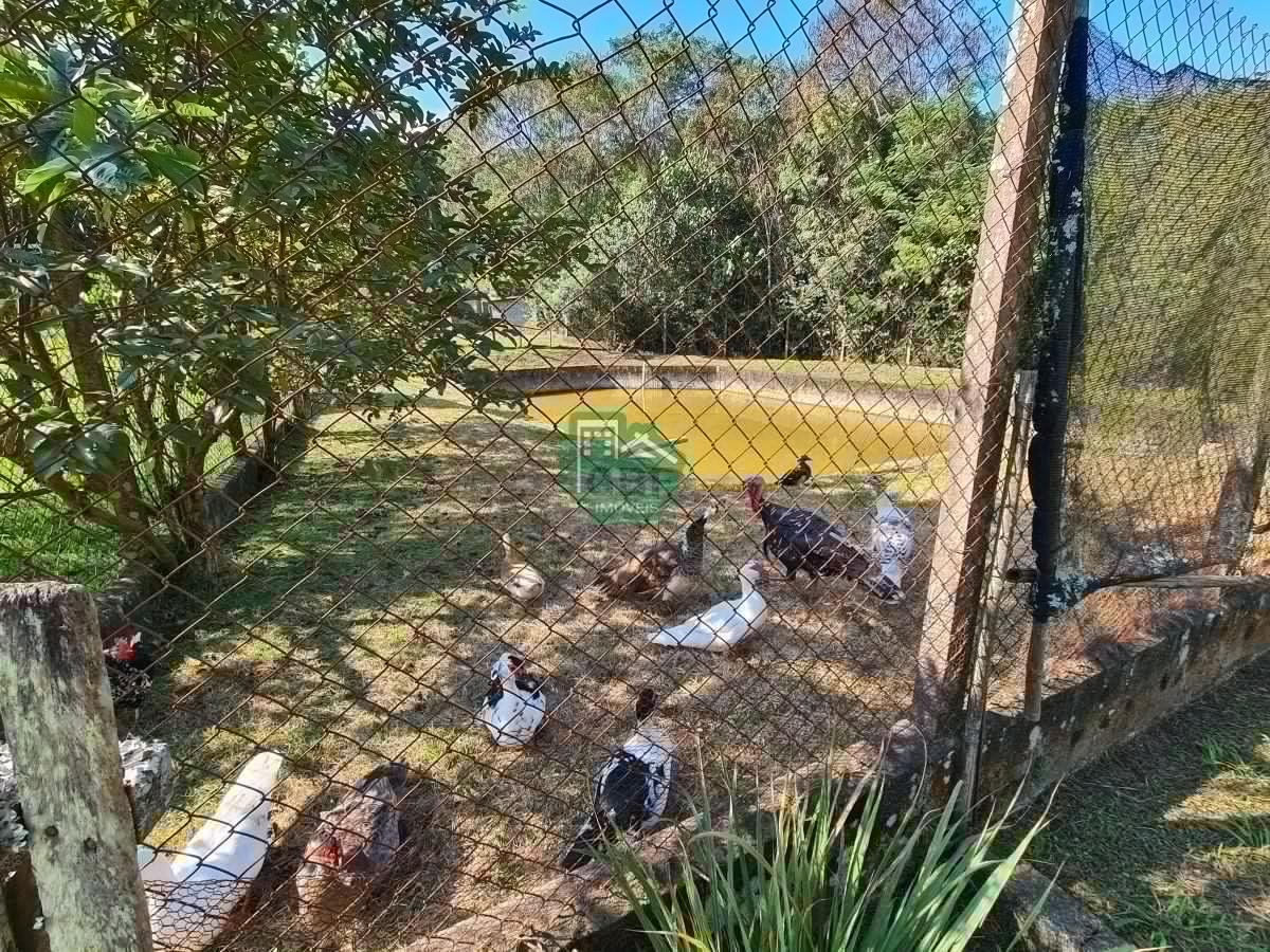 Terreno com ótima topografia, área da churrasqueira com banheiro social, piscina, campinho, casa de caseiro, galpão, amplo salão de festas com 2 banheiros,pomar, horta, 2 laguinhos sendo 1 natural e caníl.